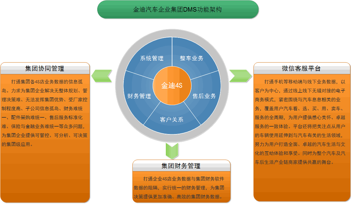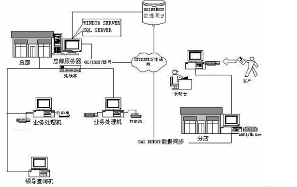 鉴于集团各4S店经营不同品牌汽车,各品牌车辆数据共享、关联度不大,为了保证系统的安全、稳定运行,建议采用分布式网络架构。集团各4S店都有自己的数据库服务器,各自独立运行,互不影响。定时进行数据交换(定时最短时间1分钟),总部数据库服务器与分店数据库服务器之间通过数据同步软件实现数据互传,实现数据共享。